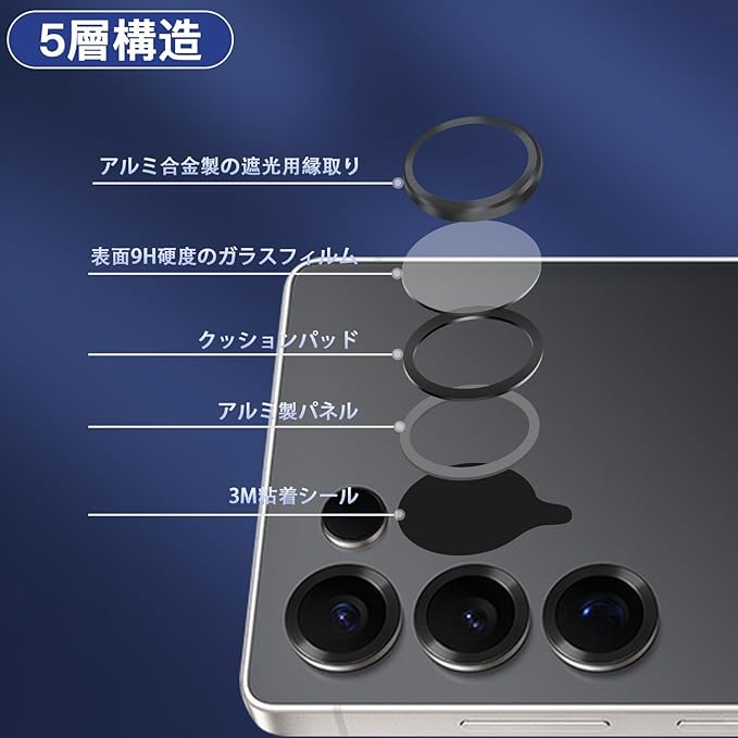 【2枚セット】 対応 Galaxy S25 Ultra カメラフィルム 保護カバー (2枚) アルミ合金製+AR高透過率強化ガラス レンズ全面保護 対応 ギャラクシーS25 Ultra レンズフィルム 強化カメラ保護フィルム 黒縁取り 露出オーバー防止 全面吸着 高透過率、硬度9H、スクラッチ防止、飛散防止、指紋・汚れ防止、気泡ゼロ 【FAMROLLS正規品】 a
