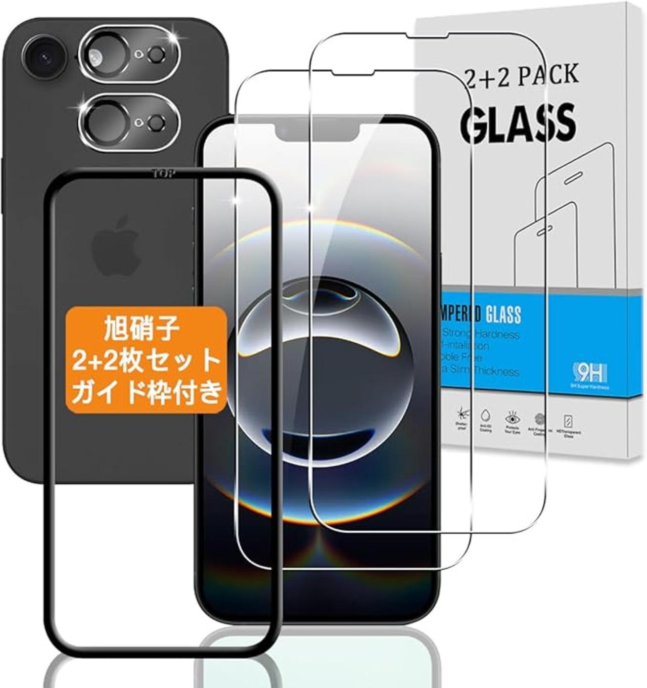 【2+2枚セット ガイド枠付き】 対応 iPhone 16E ガラスフィルム + カメラフィルム 6.1インチ 【日本旭硝子 硬度9H】 対応 アイフォン 16E フィルム 強化ガラス 液晶 いphone16E 保護フィルム 3D Touch対応 、高透過率 、気泡ゼロ 、飛散防止 、高感度 、衝撃吸収 、指紋防止 、ラウンドエッジ加工 、簡単貼り付け a