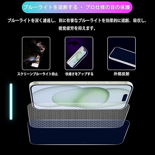 対応 iPhone 15 Plus フイルム ブルーライトカット ガイド枠付き 【2+2枚セッ- AGC旭硝子素材】 iPhone15 plus ガラスフイルム 【2枚】+ レンズフィルム 【2枚】 アイホン15 plus 液晶保護フィルム 強化ガラス さらさら レンズ保護フィルム ケース 【 硬度9H 耐衝撃 飛散防止 超薄 気泡ゼロ 高感度 撥油性 指紋防止 超耐久 ラウンドエッジ加工 】 a