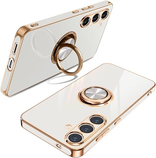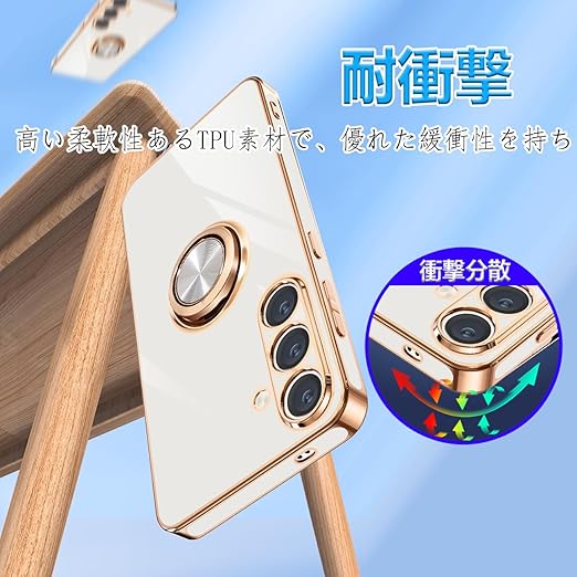 Galaxy S25 ケース リング ギャラクシーs25 SC-51F スマホケース リング付き 耐衝撃 TPU 携帯カバー シリコン スタンド機能付き 360回転車載ホルダー (ホワイト) a