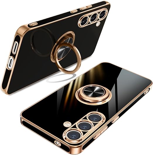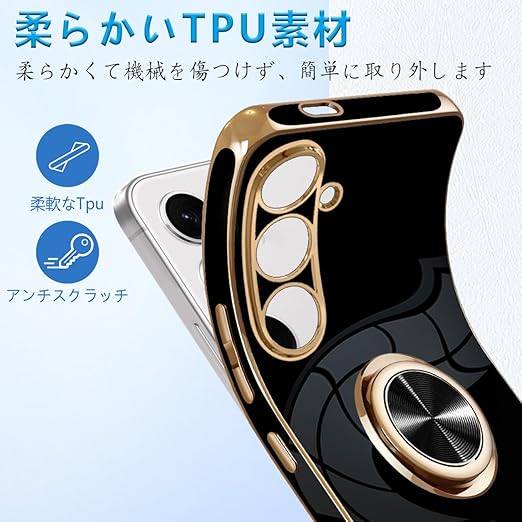 Galaxy S25 ケース リング ギャラクシーs25 SC-51F スマホケース リング付き 耐衝撃 TPU 携帯カバー シリコン スタンド機能付き 360回転車載ホルダー (ブラック) a