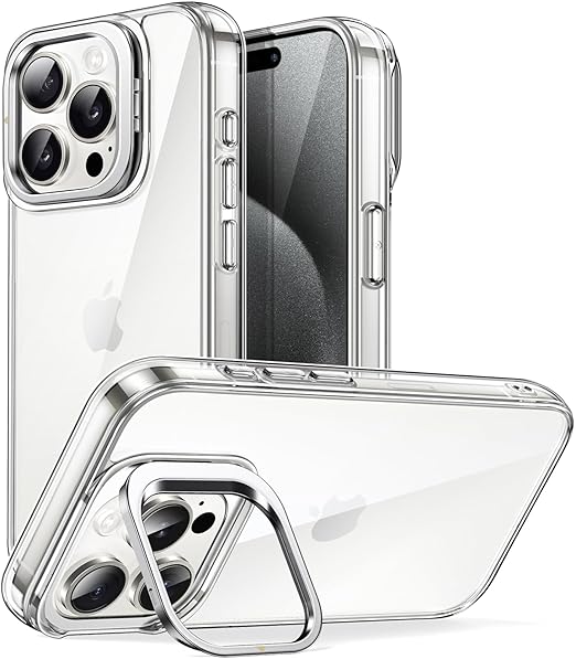 JEDirect iPhone 15 Pro 6.1インチ用キックスタンドケース カメラリングスタンド内蔵 黄ばまない 耐衝撃スマホバンパーカバー 傷防止 クリアバック (クリア) a