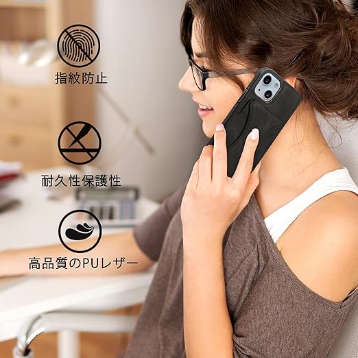 iphone 15 Plus ケース iphone 15 プラス カバー カード収納 スタンドカバー アイフォン 15 Plus ケース 背面ケース アイフォン15 プラス スマホケース 軽量 6.7 inch対応 M2 ブラック a