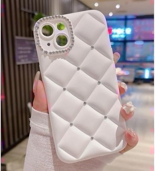 アイフォン15用ケース シルバーストーン キルティングケース 凸凹 大人 きらきら 可愛い スマホケース カバー ソフト キルティングデザイン レディース 女性 かわいい カワイイ シルバー お洒落 キルティング (ホワイト 白, 15用) a