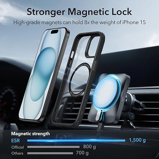 【米軍MIL規格・Magsafe対応】ESR iPhone 15 ケース ワイヤレス充電対応 耐衝撃 iPhone15 ケース 傷防止 黄ばみなし アイフォン15 ケース 対応 磁気 スマホケース iPhone15ケース Classicシリーズ クリア_ブラック a