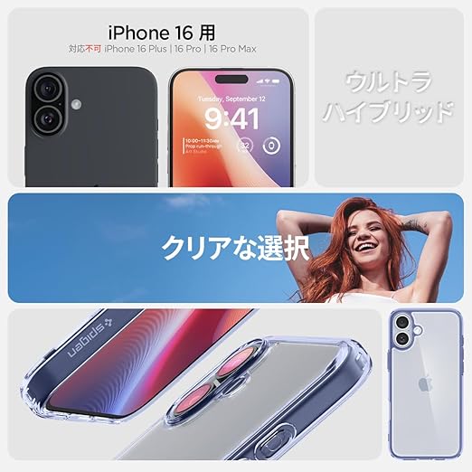 【18年社歴の技術力】Spigen iPhone 16 ケース クリア 耐衝撃 ストラップホール 黄変防止 バンパー 米軍MIL規格 ウルトラ・ハイブリッド ACS08204 (スカイ・クリスタル) a