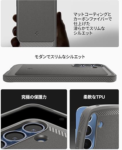 Spigen Galaxy S25 ケース Magfit対応 耐衝撃 TPU ソフト マット 米軍MIL規格 ラギッド・アーマー・マグフィット ACS08952 (マーブル・グレー) a