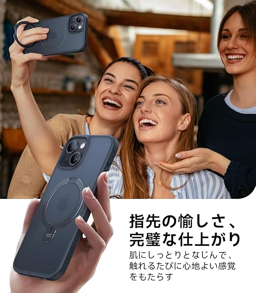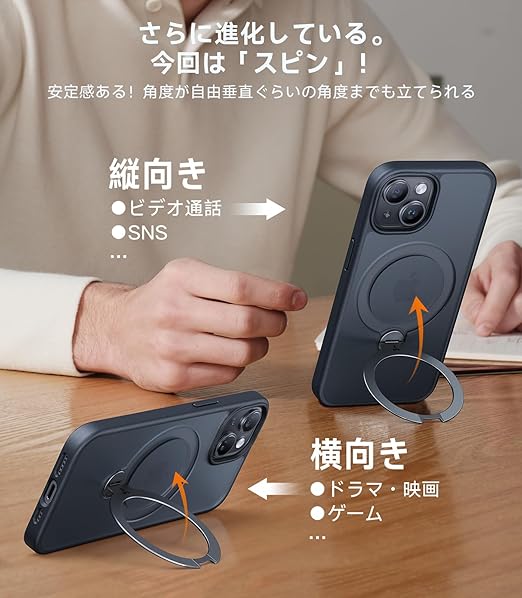 【カチッ!2025新開発・安定性】TORRAS iPhone 15 用 ケース MagSafe対応 縦横両対応 強磁力リング マグネット搭載 高耐久性 黄変防止 ワイヤレス対応 米軍規格 耐衝撃 指紋防止 アイフォン15 ケース UPRO Ostand Spin ブラック a