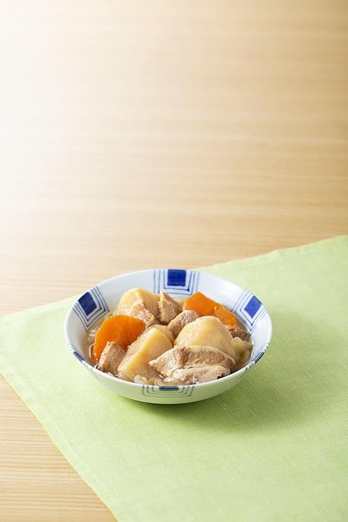 原材料:じゃがいも(国産)、豚肉、しらたき、にんじん、たまねぎ、しょうゆ、砂糖、みりん、かつお節エキス、食塩、昆布エキス/調味料(アミノ酸等)、水酸化Ca、(一部に小麦・大豆・豚肉を含む)