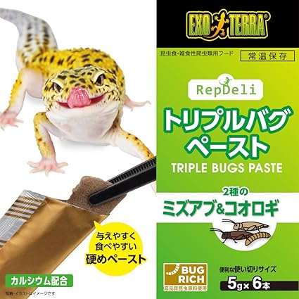 GEX EXOTERRA Repdeli トリプルバグペースト ミズアブ&コオロギ 与えやすく食べやすい硬めペースト 3種類の昆虫たっぷり濃厚 カルシウム配合 高嗜好性 昆虫食 爬虫類・両生類 レオパ 使いきりサイズ 5g×6本 a