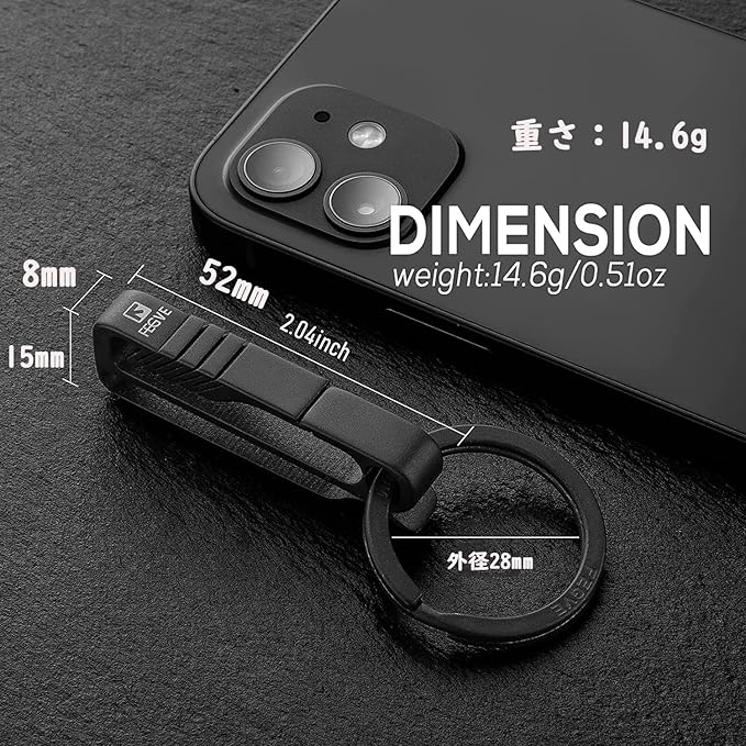 [FEGVE] TISUR バイク キーホルダー チタン ベルト カラビナ おしゃれ キークリップ 車 自転車 バイク 家 鍵 プレゼント ギフト (BK1S-クリップ式)