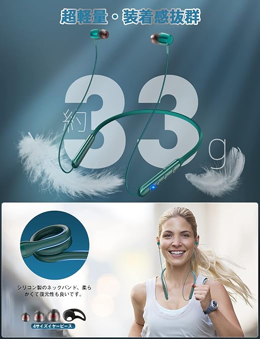 ◆史上最も長い・38時間連続再生ネックバンド型イヤホン登場◆ 【最先端bluetooth5.3チップ・大容量バッテリー】最先端のBluetooth5.3技術を採用されて、接続性がよく安定して、通信スピード、通信範囲とも向上にしました。従来品と比べると高速で移動する際にも、遠距離の空間にも、従来品より「音飛び」や「音切れ」」などの状況も改善できます。省エネルギーの大容量バッテリーがダブル搭載されているため、1回のフル充電で最大約38時間連続再生できて、普通のbluetoothイヤホンより2倍以上実