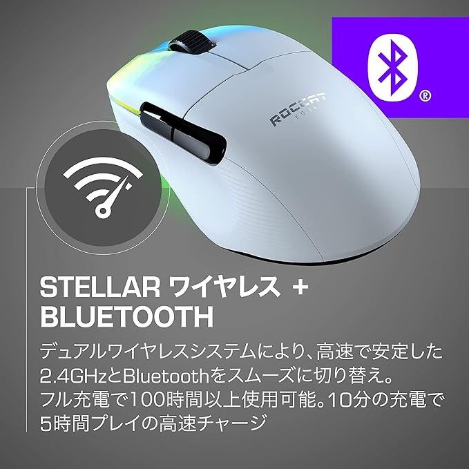 ROCCAT ゲーミングマウス Kone Pro Air ワイヤレス 2.4GHz/Bluetooth ホワイト/白 光学式/19K/オプティカルスイッチ/サイドボタン/軽量75g/PTFE/Reflex/RGB ドイツデザイン a
