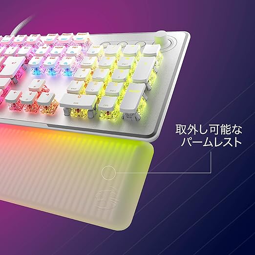 ROCCAT ゲーミングキーボード Vulcan II Max JP 日本語配列 有線 ホワイト/白 オプティカル リニア 静音 フルサイズ カスタマイズ可能 RGB 半透明アームレスト ボリュームダイヤル 【日本正規代理店品】 a