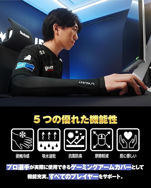 REJECT アームカバー ゲーミング サムホール ロング 1枚入 マウスパッド ガラス ゲーム ゲーミングアームカバー fps tps VALORANT Apex フォートナイト GAMING ARM SLEEVE - THUMB HOLE LONG a