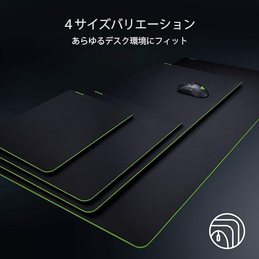 【4 種類のサイズバリエーション】 4 種類のサイズバリエーションによりさまざまな環境にフィットします。デスク全体をカバーする 3XL サイズは低DPI を使用するユーザーや、大きなマウスパッド上でマウスを操作したいユーザーに最適です。