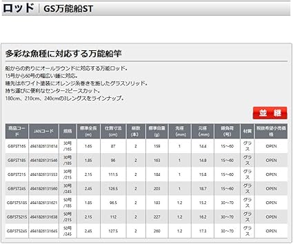 大阪漁具(OGK) GS万能船ST 規格:30号/50号 サイズ:165/185/215/245 オールラウンド船ロッド 【ホワイト塗装ティップ+オレンジ糸巻き/センター2ピーカットグラスロッド】 a
