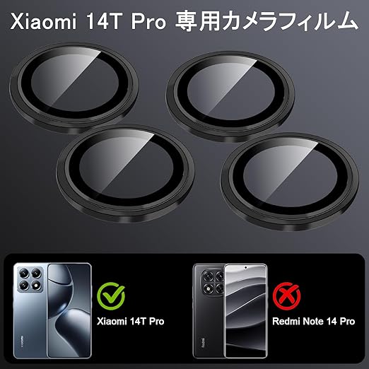 For Xiaomi 14T Pro 用 カメラフィルム 対応 xiaomi 14t pro 専用レンズフィルム 9H硬度 高透過率 耐衝撃 飛散防止 アルミ合金製 露出オーバー防止 防爆裂 アイパッド 用 レンズ 保護フィルム(ブラック) a