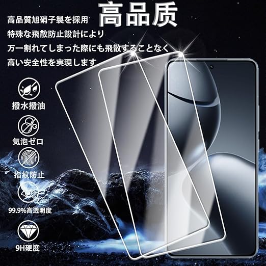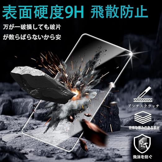 【飛散防止設計】高品質の日本硝子素材を採用します。飛散防止加工により、万が一ガラスが破損した場合も飛び散らず、破片は張り付いたままの状態になります。スクリーンを安 全に保護しながら破損による怪我を防ぎます。とっても安全!