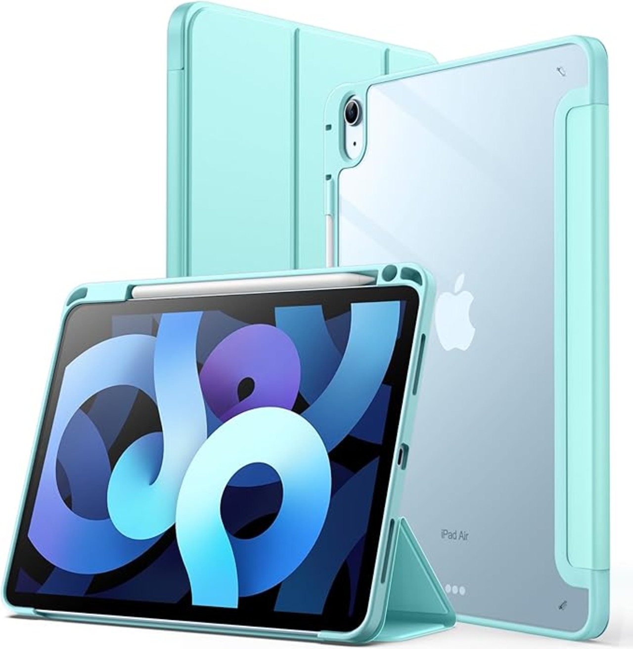 JEDirect iPad Air 11 インチ M3/M2 (2025/2024)、iPad Air 5/4 ケース 10.9 インチ (第5/4世代、2022/2020モデル用) Pencil収納可能透明バックカバー 薄型 スタンド 衝撃吸収 タブレットカバー オートウェイク/スリープ機能 (ミントブルー) a