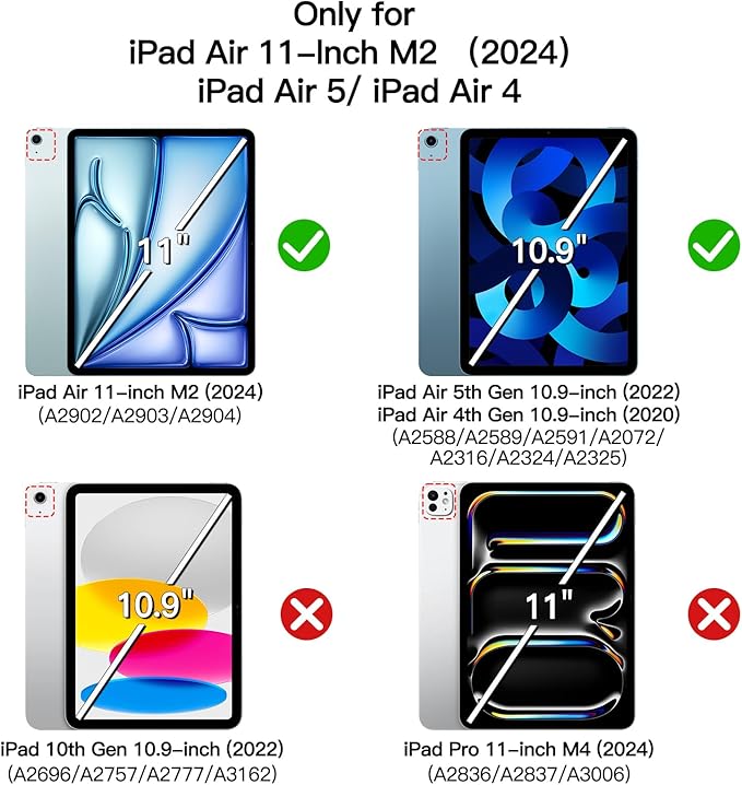 [互換性] ご注意:iPad 10/9/8/7(2022/2021/2020/2019 モデル), iPad 9.7インチ(2018/2017 モデル), iPad mini, iPad Air, iPad Proに対応できない。Pencil Pro/Pencil(USB-C)に対応。iPad Air 11インチ M3/M2 (2025/2024) 、iPad Air5/4 2022/2020 10.9インチ専用iPad Air 5/4 保護ケース 用の特別デザインです。対応モデル:A2902