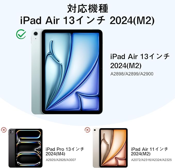 【対応機種】対応iPad Air 13インチ(M2/M3 2024/2025)および対応iPad Pro 12.9インチ(第6/5/4世代、2022/2021/2020)専用です。モデル番号:A2436/A2437/A2764/A2766/A2378/A2379/A2461/A2462/A2229/A2232/A2233/A2069。他の対応iPadモデルと互換性がありません。※ご注意ください:Apple Pencilは含まれておりません。