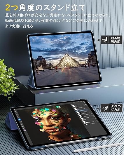 「適用機種」 2025年発売のiPad Air 13インチ (M3)(モデル番号:A3269/A3271)と2024年発売のiPad Air 13インチ (M2)(モデル番号:A2898/A2899/A2900)に対応できる手帳式のケースです。iPad Pro 12.9 第5/6世代 2022/2021 ( モデル番号:A2378/A2461/A2379/A2462/A2436/A2437/A2764/A2766) にも対応しております。取り扱いやすくタブレットにピッタリフィットできる見栄えも保