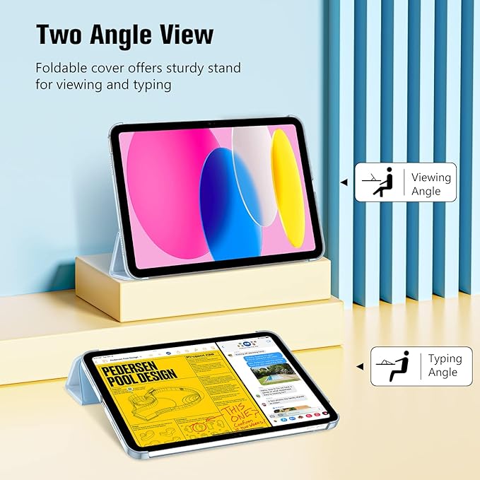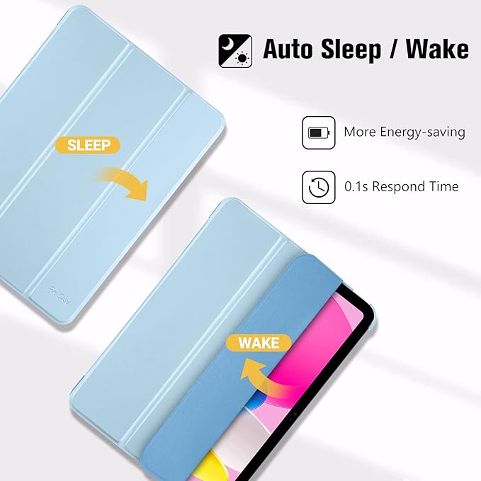 ProCase iPad 10世代 ケース 2022 10.9インチ A2696 A2757 A2777 軽量 耐衝撃 三つ折り スタンド スマートカバー(スカイブルー) a