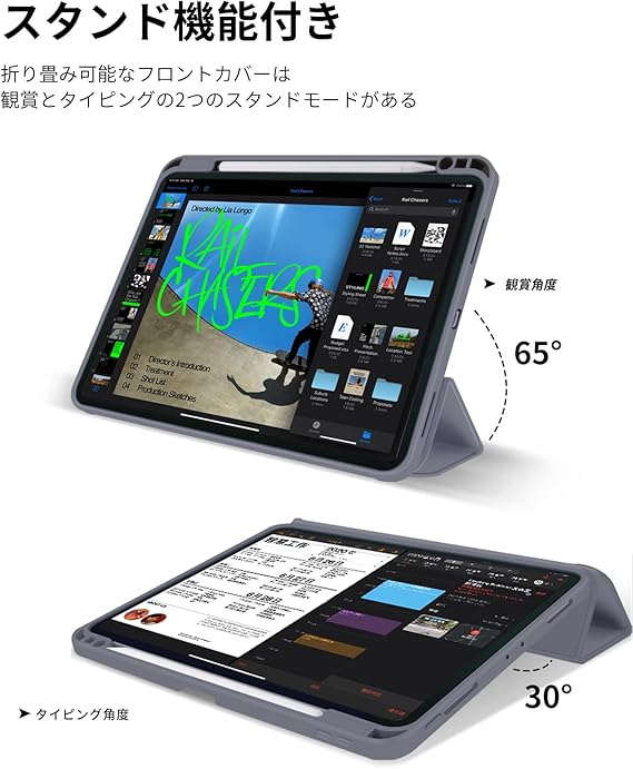 Aoub iPad Air 11 インチ ケース 2024 iPad Air 第5/4世代 カバー 2022/2020年 10.9 インチ Pencil Proペン収納 Apple Pencil2 ワイヤレス充電対応 オートスリープ/ウェイク機能対応 ソフト TPU 薄型 軽量 耐衝撃 三つ折りスタンド(ブルーグレー) a