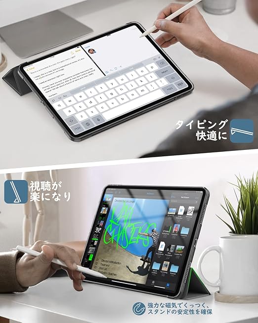 「iPad Air 11インチ/5世代 4世代 10.9インチ ケース」2024年発売のiPad Air 11インチ(M2)(モデル番号:A2902、A2903、A2904)、2022年発売のiPad Air 5(モデル番号:A2591、A2588、A2589)と2020年発売のiPad Air 4(モデル番号:A2316、A2324、A2325、A2072)に適用します。iPad 第10世代 10.9インチ、iPad Air 13インチ、又は他のモデルには適用しません。ご購入前に、機種・モデル