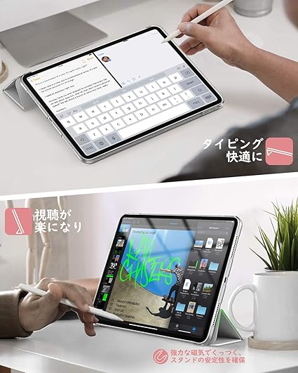 iPad Air 11インチ ケース(2024) Dadanism iPad Air 5 Air 4 カバー iPad Air 11インチ(M2)/第5世代 第4世代 10.9インチ ケース アイパッド エア11インチ オートスリープ PencilPro/第2世代ワイヤレス充電対応 PU+TPU 三つ折り スタンドケース 半透明 ソフト シルバーグレー a