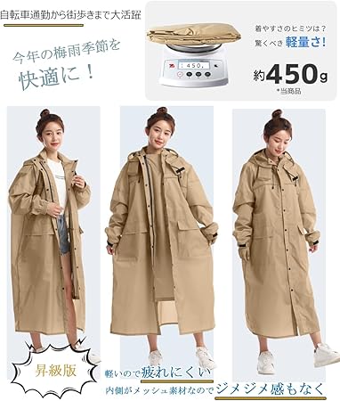 【自転車通勤から街歩きまで大活躍】耐水圧15,000mm、急な豪雨であっても完全に防ぎ不快感も無く快適に使えます。日常での使いやすさを重視し、街歩きや自転車運転で便利な機能が満載の快適・スタイリッシュなレインコートです。★★急な雨の時やちょっとしたお出掛けの時、レインスーツでズボンまで履くのは面倒だ、という方もコートタイプなら普段着に羽織るだけです。