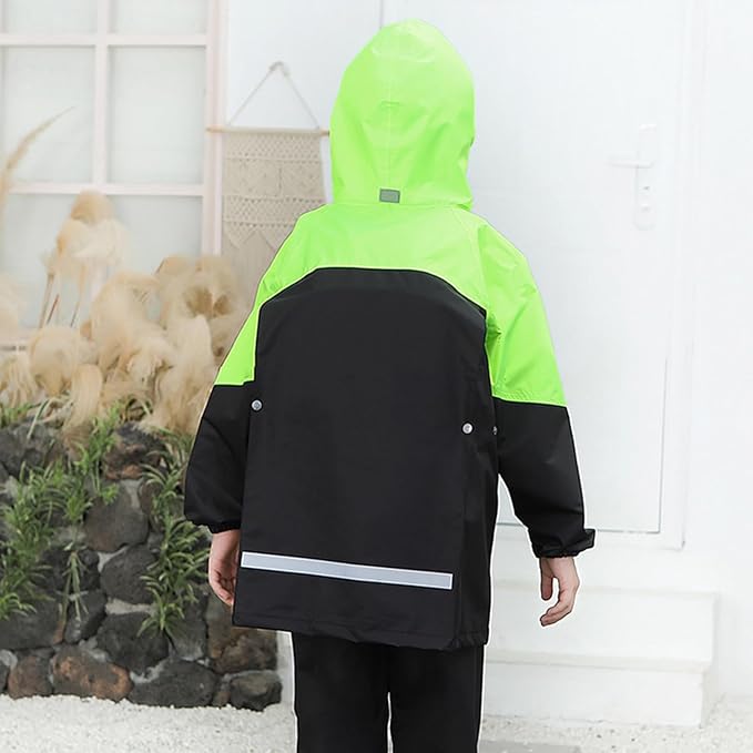 [Formemory] レインコート キッズ 上下セット ポンチョ レインスーツ 子供 女の子 男の子 カッパ子供 ゴム付きの袖 ランドセル対応 透明窓付き 防風 防水ハイネック 通学 子供用 雨具 遠足 梅雨対策 携帯ポーチ付き 雨具