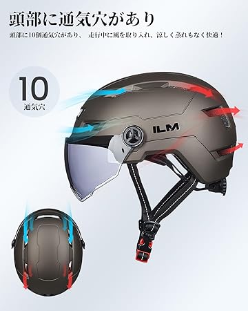 ILM 自転車 ヘルメット 大人 LEDライト付属 夜間照明 バイザー付き CE/PSE/CPSC/ASTM/EN1078認定 ロードバイク/サイクリングヘルメット 通学通勤 軽量 通気 耐衝撃 サイズ調節 男女兼用 a