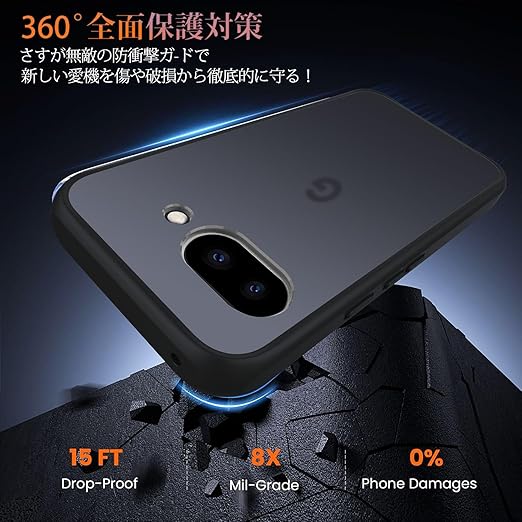 iYiTai Google Pixel 9a 用 ケース 2重構造 [TPU+PC] ワイヤレス充電対応 ストラップホール付き 神秘的な肌感 耐衝撃 指紋防止 黄変防止 グーグル ピクセル 9a カバー (マット・ブラック) a