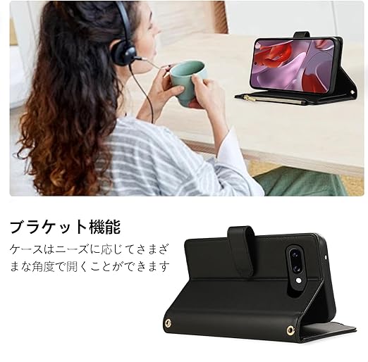 Google Pixel 9A ケース 手帳型 ピクセル9A ケース 手帳型 Googleピクセル9A ケース 財布型 スタンド機能 ショルダー 肩掛け 斜め掛け ぐーくるぴくせる9A ケース スマホケース グーグルピクセル9A 携帯カバー グーグル ピクセル 9A ケース カード収納 携帯ケース ピクセル9A カバー チャック付き 小銭入れ RFIDブロッキング 耐衝撃 おしゃれ -ブラック a