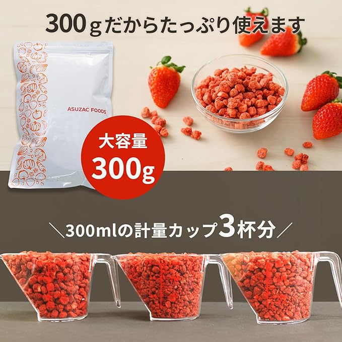 アスザックフーズ フリーズドライ いちご 300g 10mm カット 製菓 業務用 トッピング 苺 フルーツ ヨーグルト や シリアル に おやつ イチゴ a