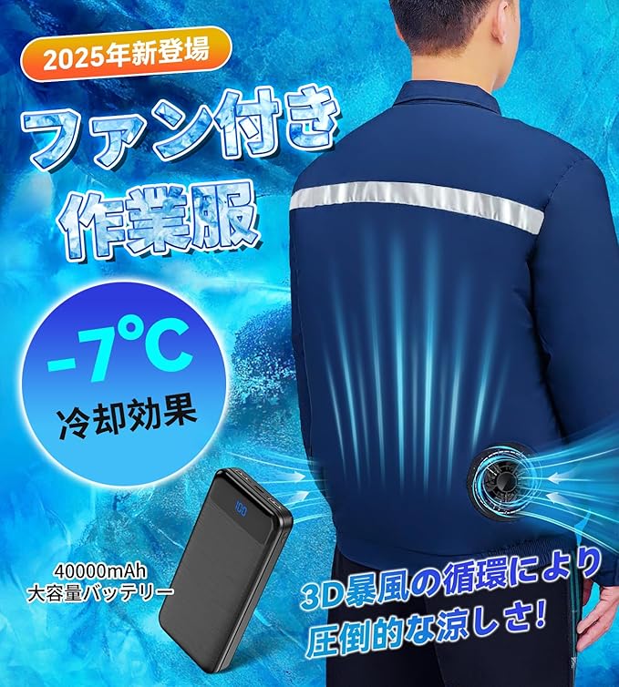[FGTGGG] 空調作業服 ファン付き 40000mAh大容量バッテリー ファン付き作業服 冷却服 3D循環送風 3段階風量調節可 通気 サイズ調節可 最大20時間送風 長袖 UVカット PSE認証済 熱中症予防 猛暑対策 男女兼用 a