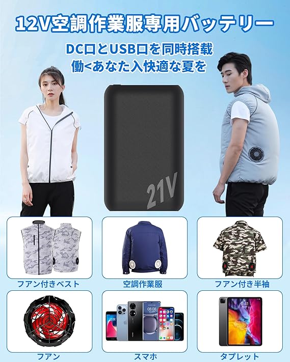 空調作業服 バッテリー 21V 超高出力 20000mAh 大容量 バッテリー DC/USBデュアル出力 4段階風速調節 LED液晶ディスプレイ搭載 Type-C急速充電 小型 軽量 空調作業服用バッテリー ファン付きベスト バッテリー 停電対策 旅行/出張/アウトドア/防災/地震/緊急用などの必携品 (PSE認証済) a