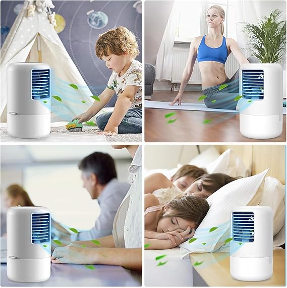 【送風・冷却・加湿・空気浄化】1台4役冷房冷風機は涼しい風を送るだけではなく、加湿器として、さらにアロマオイルをプラスすればディフューザーとして機能します。こちらの卓上冷風機は、水を入れる場合は、冷風機として機能します。風量を確保する同時に加湿効果も感じます。扇風機より潤くて、エアコンほど寒くならないので日中でも快適に利用できます。送風範囲が広いため、乾燥した熱を取り除き、同時に空気をリフレッシュする。加湿タンクは、加湿器単体としてもクーラーとしても使用できます。水タンクの汚染を防ぐだけではなく
