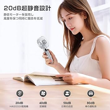 HAGOOGI ハンディファン 携帯扇風機 LEDライト付き 20dB静音 クリアデザイン 3段階風量調節 強力 USB Type-C 手持ち扇風機 小型 ハンディ扇風機 ストラップ付き 熱中症対策 オフィス/アウトドア/通勤 (クリアプラムピンク) a