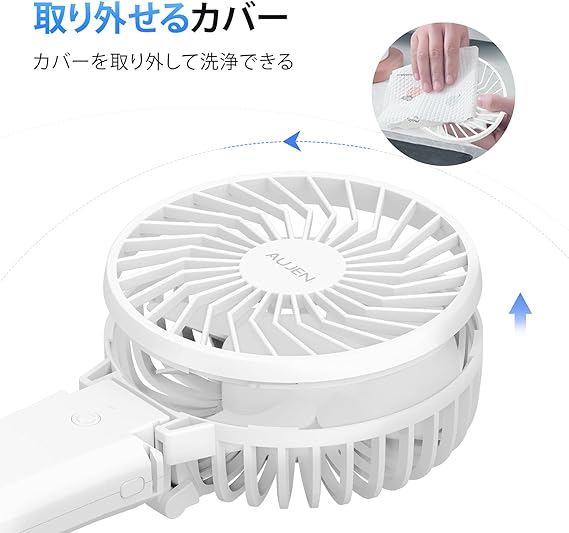 Aujen 携帯扇風機 充電式 最大作動時間35h ハンディファン 手持ち扇風機 小型 卓上扇風機 5200mAh モバイルバッテリーあり パワーバンク 携帯便利折り畳んで スタンド機能 折り畳み式 ホワイト a