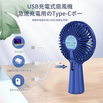 携帯扇風機 小型 卓上扇風機 USB 充電式 ミニ手持ち扇風機 Type Cポート 5枚羽大風量 3段階風量調節 静音 旅行 自宅 オフィス 夏 通勤 通学 熱中症対策 オフィス スポーツ観戦 花火大会 a