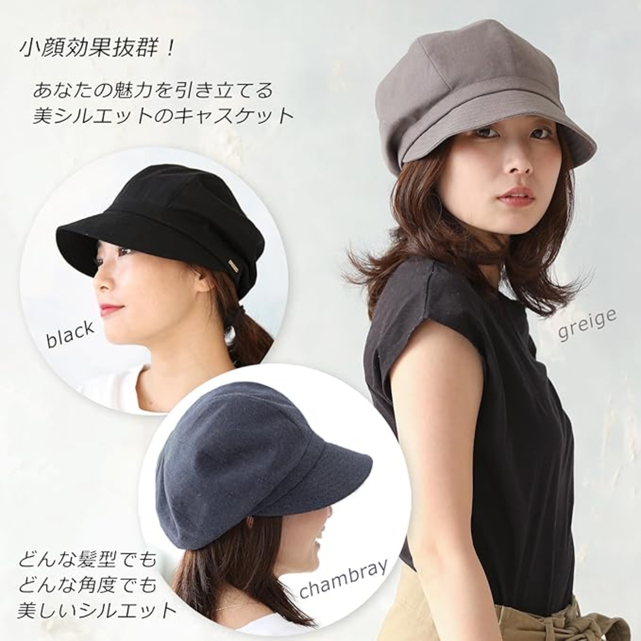 帽子 春夏 キャスケット 美シルエット (通気性が良い麻混素材) UVカット (折りたたみ可) レディース
