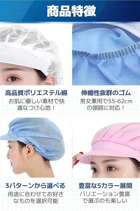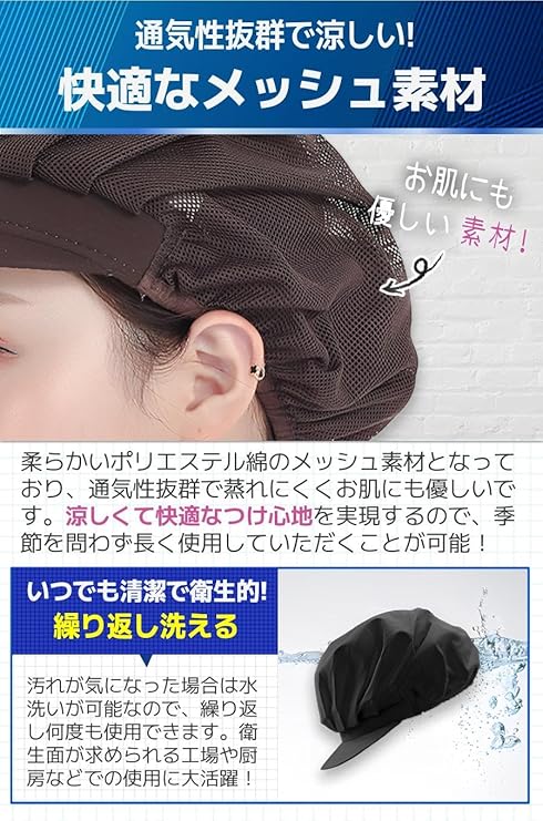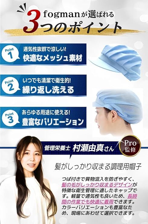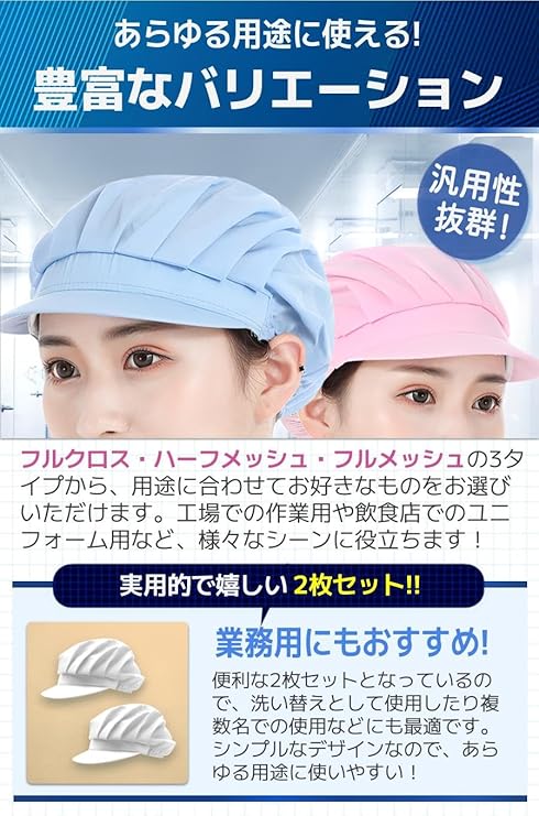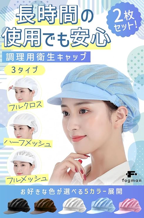 [fogman] 【管理栄養士監修】 衛生キャップ 帽子 つば付き 衛生帽子 調理用帽子 食品工場 厨房 業務用 2枚セット