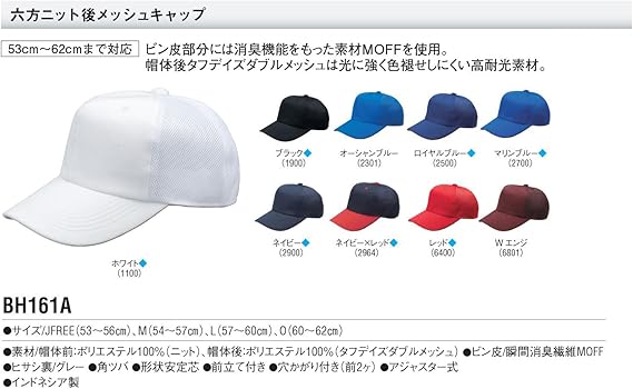 素材:帽体前/ポリエステル100%(ニット)、帽体後/ポリエステル100%(タフデイズダブルメッシュ)