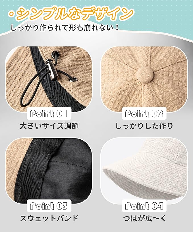 [SIVAN] UVカット帽子 レディース 【立体的なワッフル柄・ 圧倒的な小顔効果・ 大きなツバが前方に広がっている・UPF50+(認証済み)】 日除け帽子 日焼け防止 吸汗排湿 深めタイプ サイズ調節 夏 キャップ 帽子