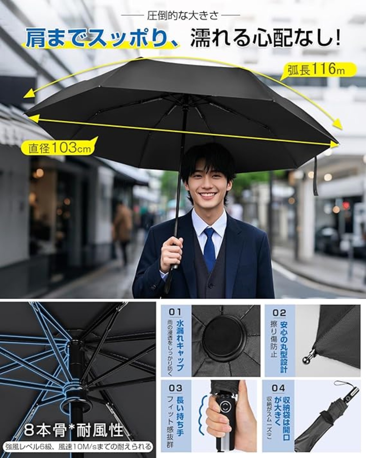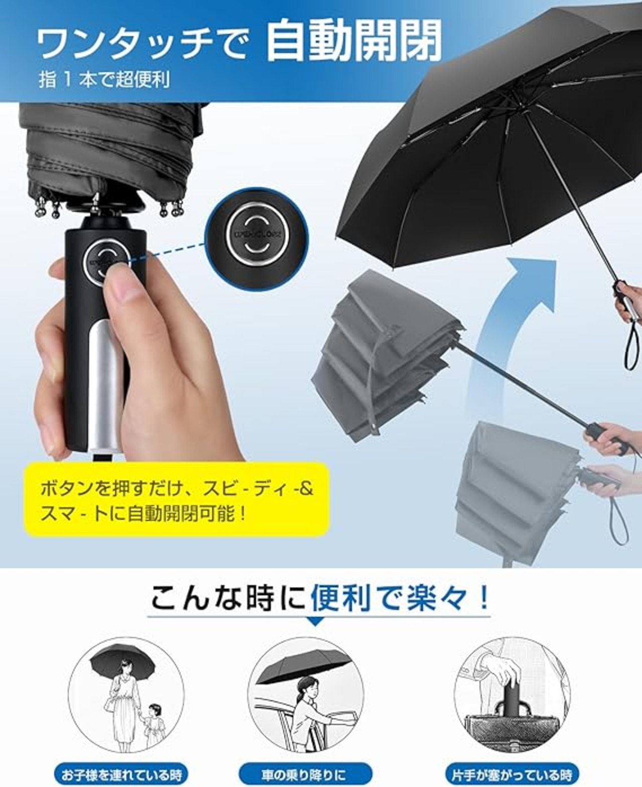 YOIIYO 折りたたみ傘 ワンタッチ自動開閉 折り畳み傘 大きいサイズ 晴雨兼用 丈夫 軽量 8本骨 強風に強い 豪雨対応 紫外線遮断 UVカット 完全遮光 日傘 コンパクト おりたたみ傘 折畳傘 メンズ レディース 収納ポーチ付き c