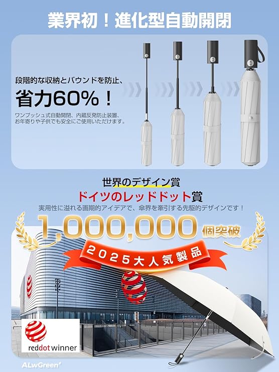 【現役皮膚科医監修 JIS認証】日傘 UVカット100遮光遮熱 おりたたみ傘【業界初!安全式自動開閉】ALwgreen折りたたみ傘 大きい超軽量 熱中症対策 肌を守る 折り畳み傘 晴雨兼用 耐風頑丈 携帯便利 超撥水日傘兼用雨傘 レディース/メンズ/子供/大人兼用 収納ポーチ付き 母の日 父の日 お祝い 誕生日プレゼント2年メーカー保証