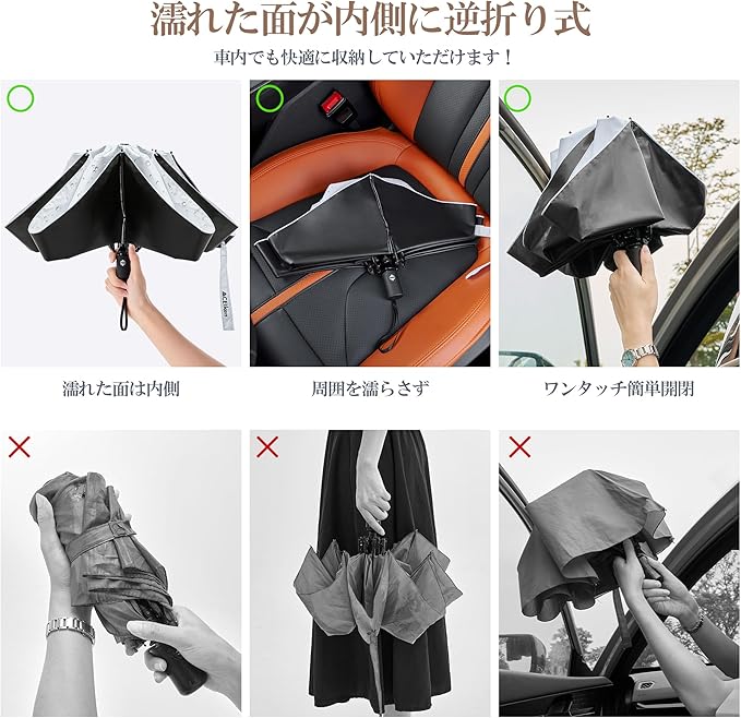 【逆折り 210g超軽量】ACEIKEN 日傘 UVカット 99% 遮光 折り畳み 折りたたみ傘 レディース 6本骨 日傘兼用雨傘 耐風撥水 丈夫 自動開閉 遮熱 収納ポーチ付き